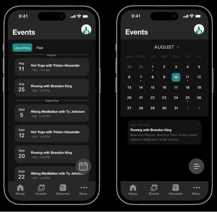 In designing the event previews, we prioritized displaying the most pertinent information, such as the date, time, and title. User interviews indicated this data is what members typically expect to see when browsing event listings.